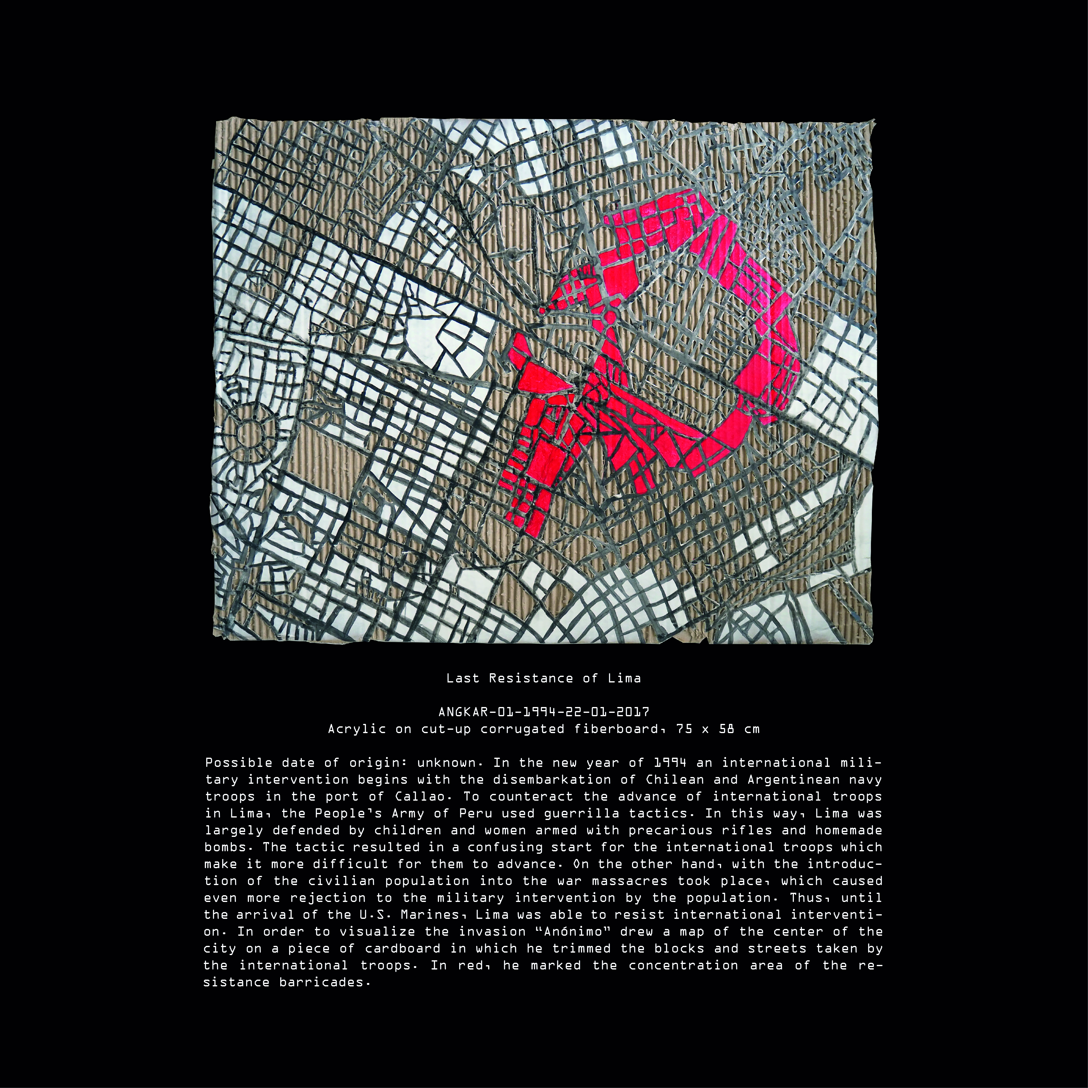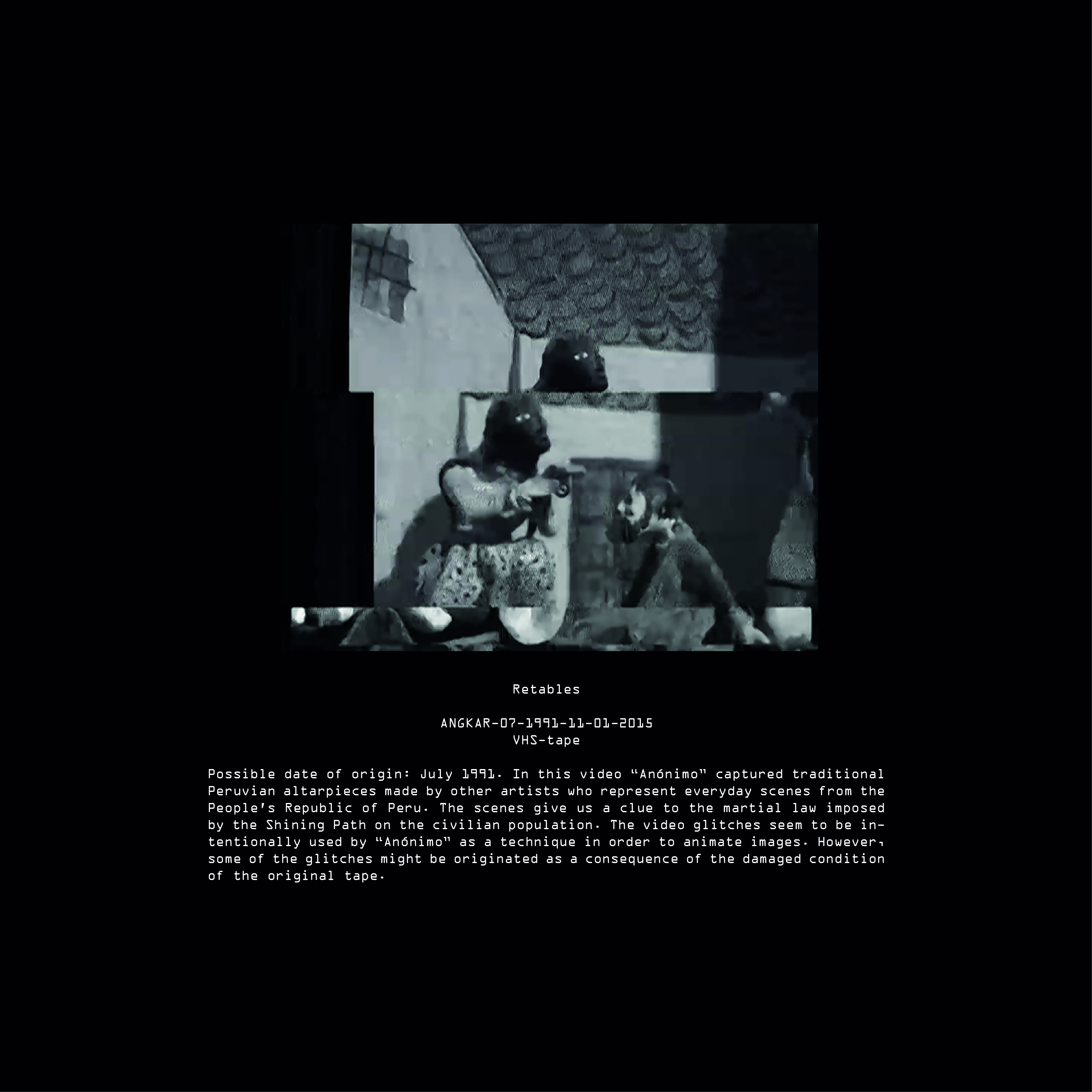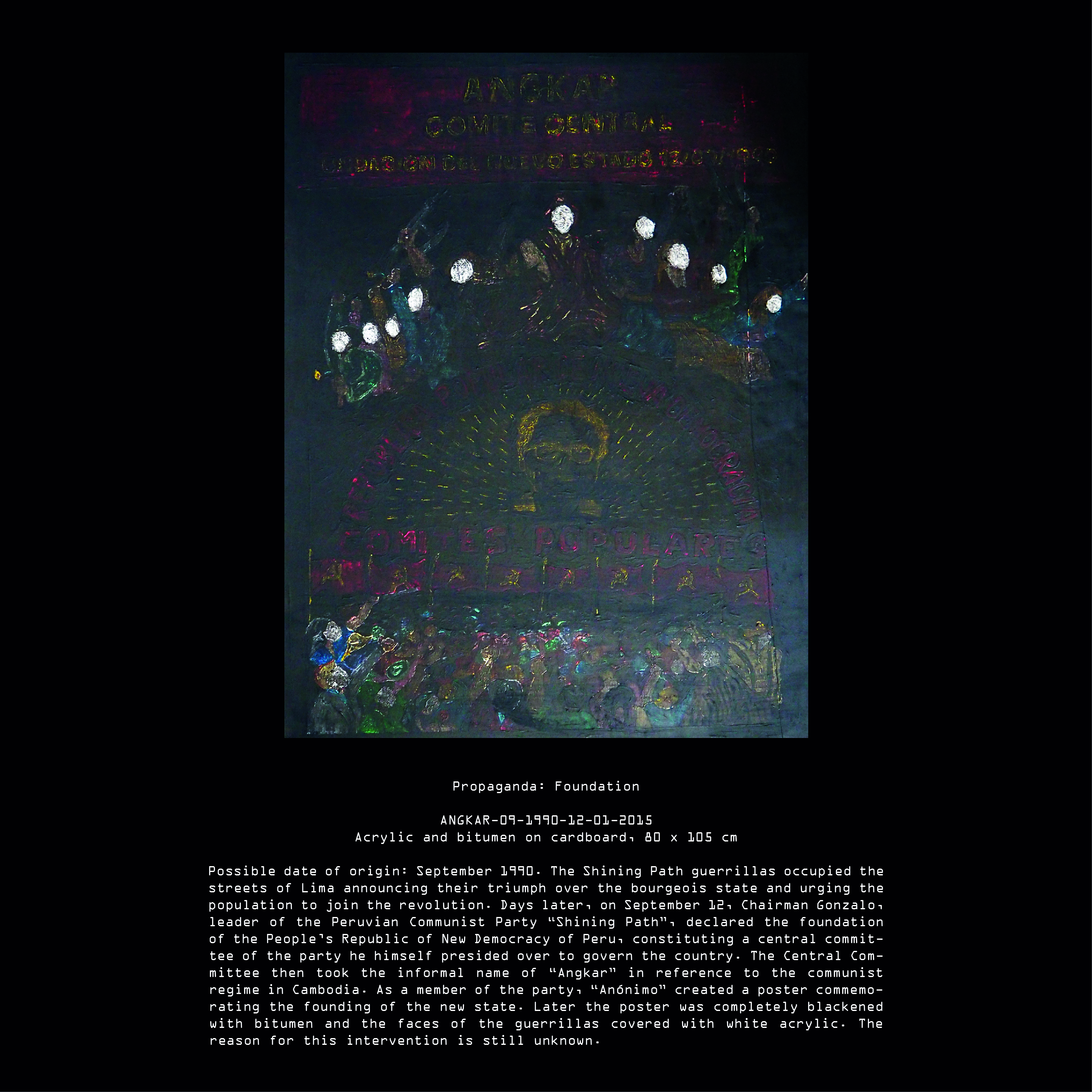 Today, after many years of research we have been able to elucidate many aspects of “Anónimo’s” life during the Peruvian Angkar. It is still difficult for us to establish one single authorship in some of the pieces contained in our archive. Although, all pieces can give us at least some hints about the artist’s life. These hints come to an abrupt end with his final disappearance during the international military intervention in Peru on Saturday, 19th of February, 1994.