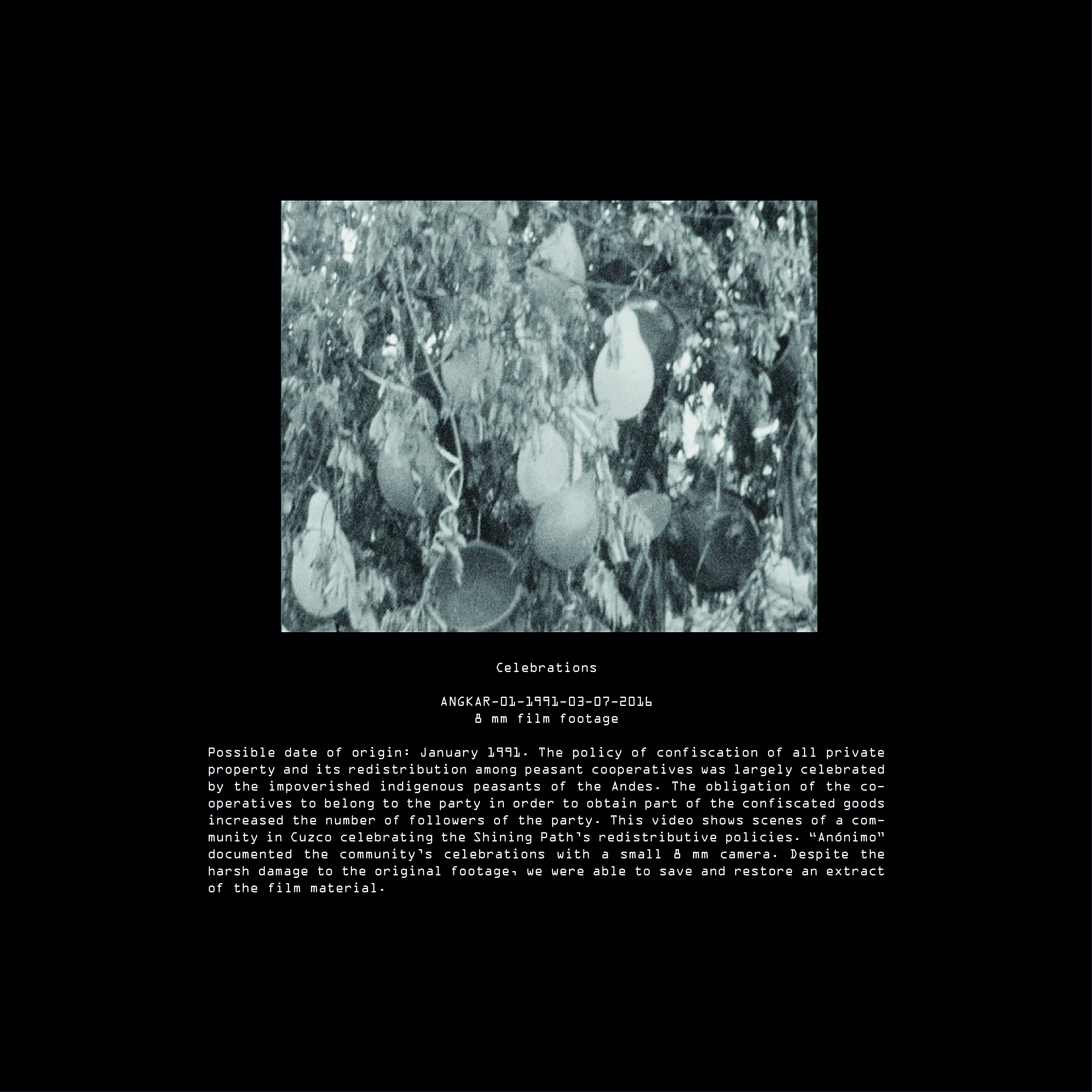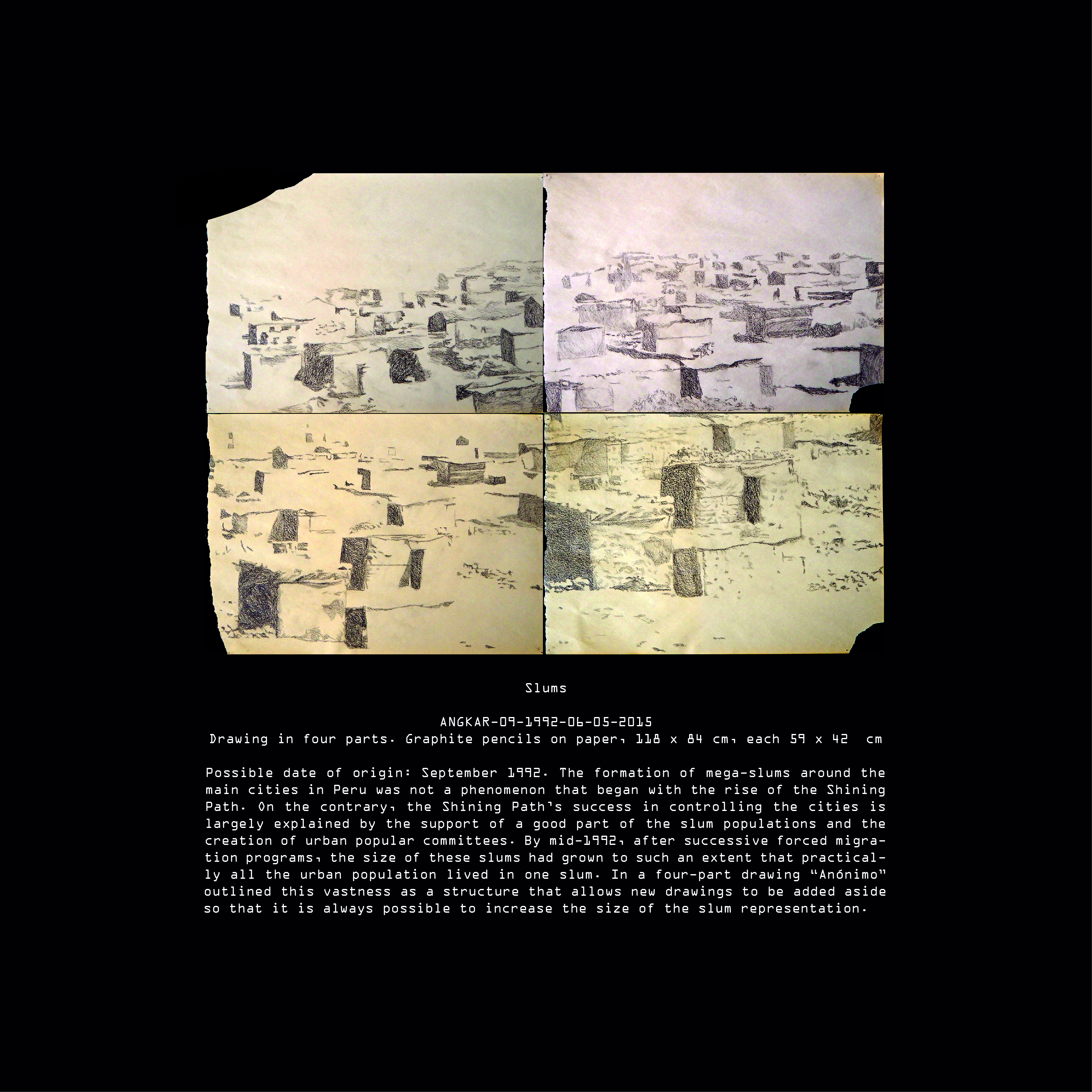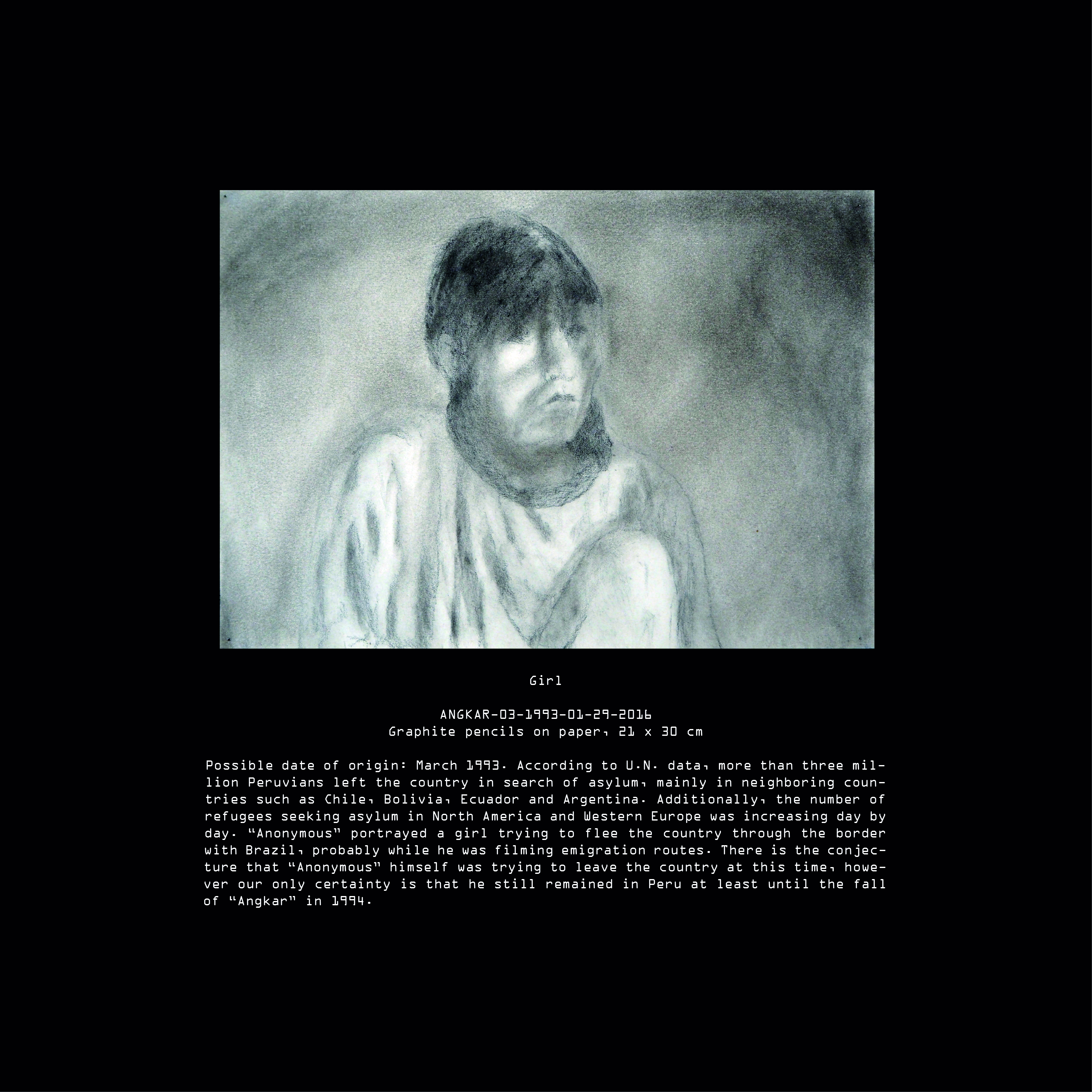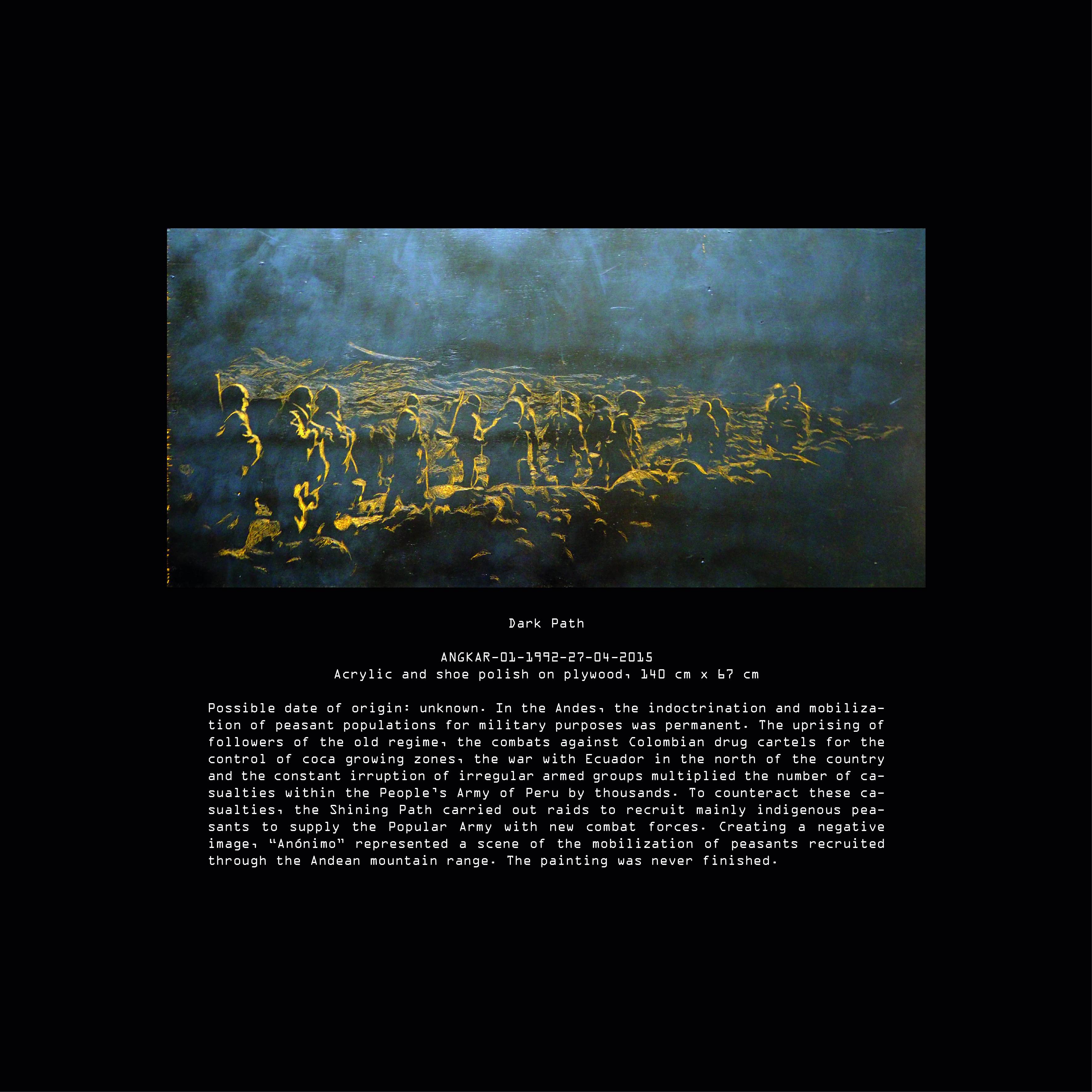 Today, after many years of research we have been able to elucidate many aspects of “Anónimo’s” life during the Peruvian Angkar. It is still difficult for us to establish one single authorship in some of the pieces contained in our archive. Although, all pieces can give us at least some hints about the artist’s life. These hints come to an abrupt end with his final disappearance during the international military intervention in Peru on Saturday, 19th of February, 1994.